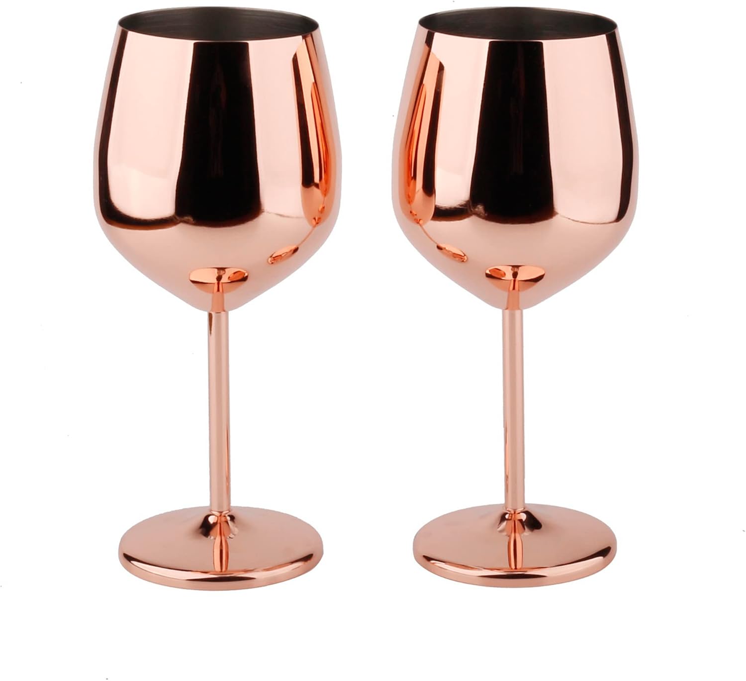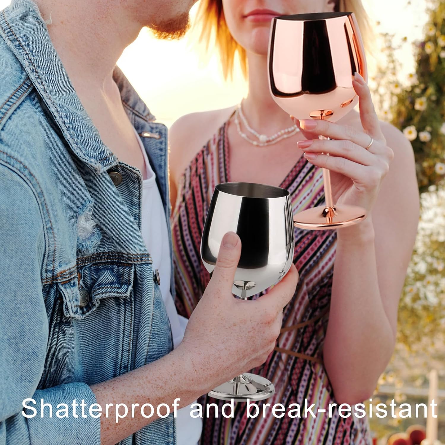 Set of 2 stainless steel 18oz wine glasses. Ideal for red and white wines. Even great as a water goblet!